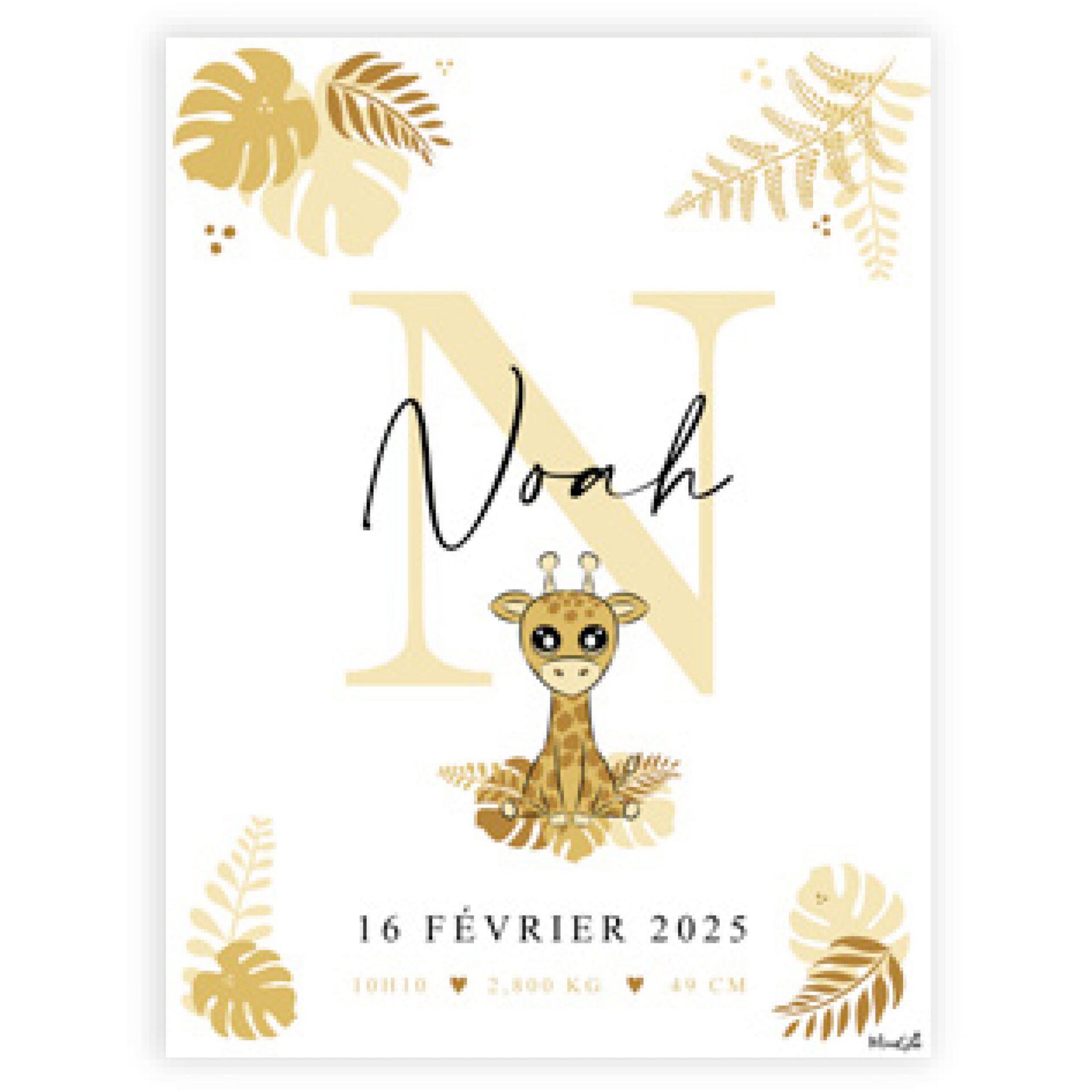 Affiche naissance au format vertical 30×40 cm – imprimable en format inférieur 20×30 cm ou 10×15 cm – une impression en format supérieur fera apparaître une pixellisation des éléments.