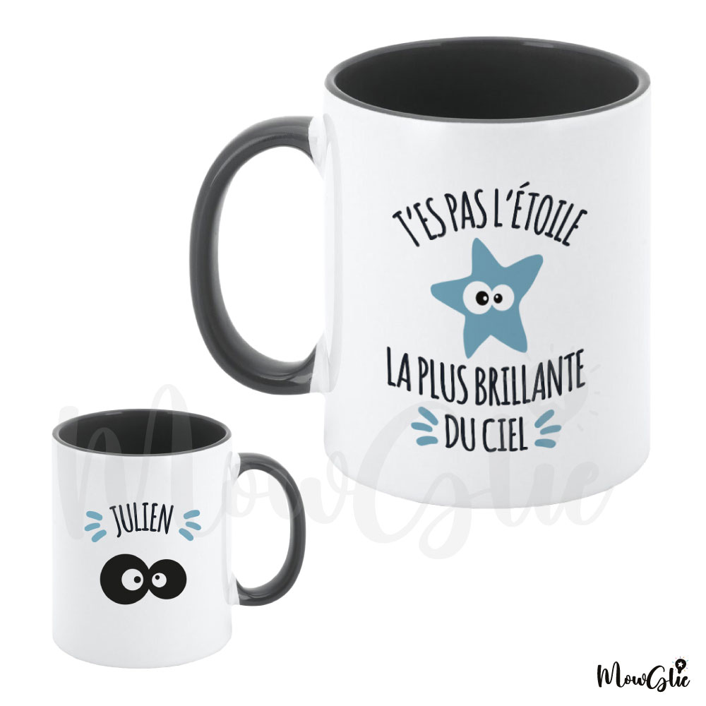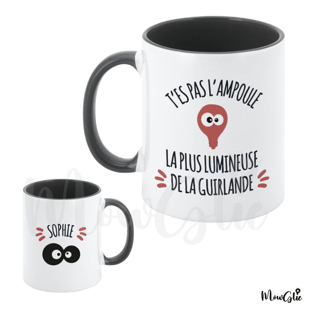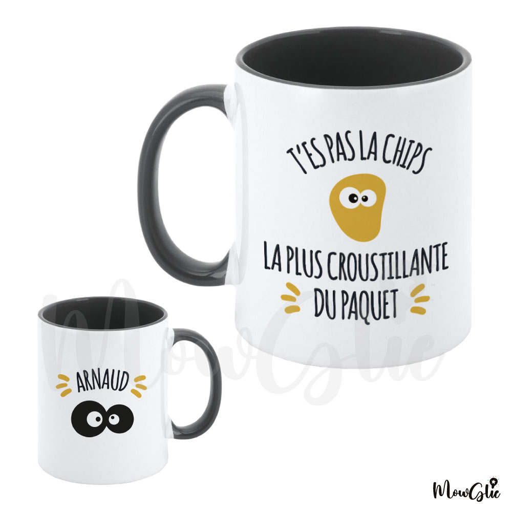 Choisissez parmi 8 Ouins-Ouins et leur phrase culte : T’es pas… la chips la plus croustillante du paquet, l’ampoule la plus lumineuse de la guirlande, le buisson le mieux taillé du jardin, l’étoile la plus brillante du ciel, le fromage le plus affiné du terroir, la pomme la plus sucrée du verger, la touche la plus utile du clavier et le son le plus funky de la playlist. Personnalisez le dos du mug avec le prénom du proche à qui vous l’offrez pour transformer cet objet du quotidien en une pièce unique et un souvenir précieux. La couleur des personnages apporte une touche de gaité supplémentaire et contraste avec l’élégance du mug noir et blanc.