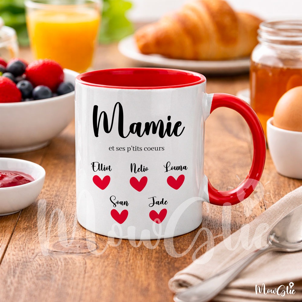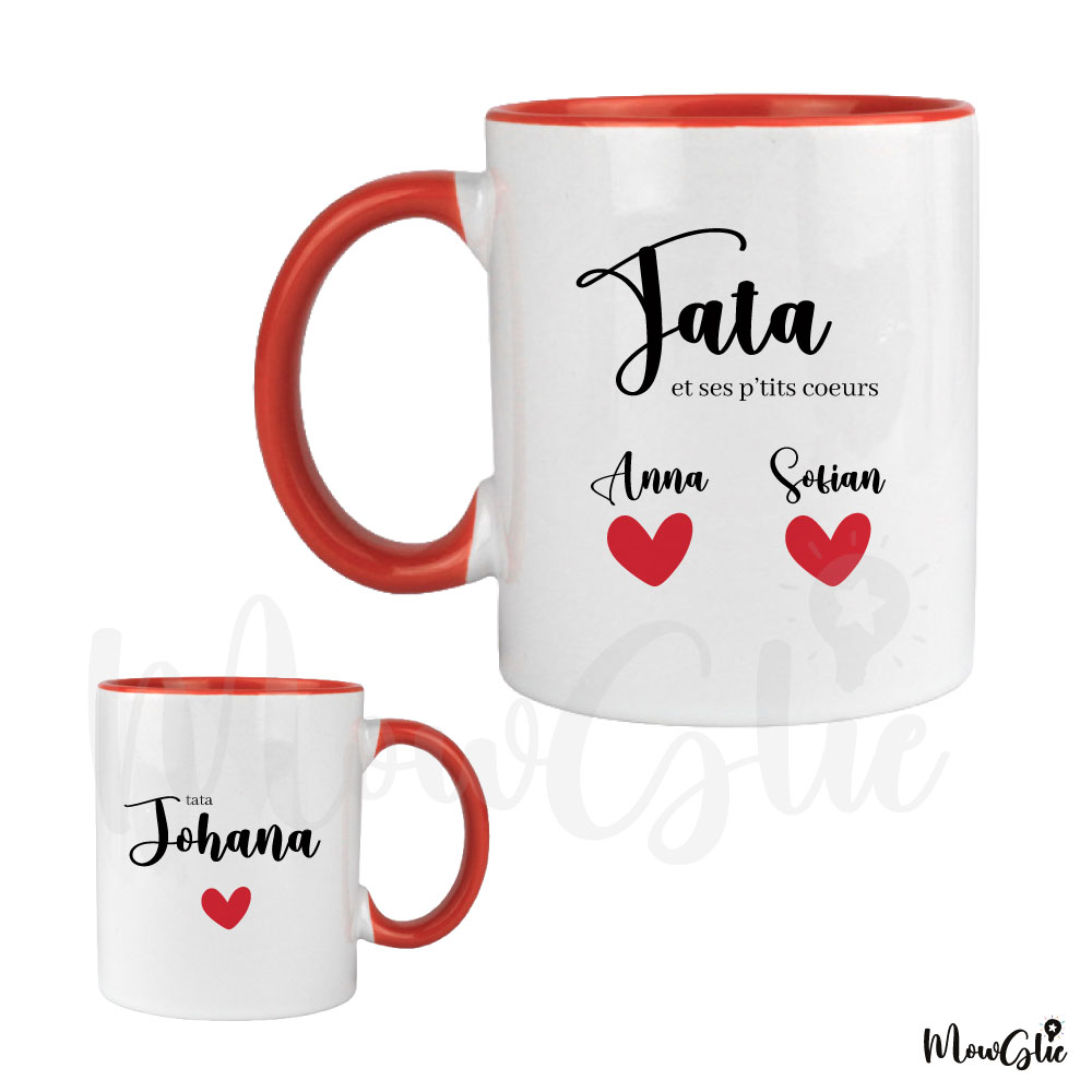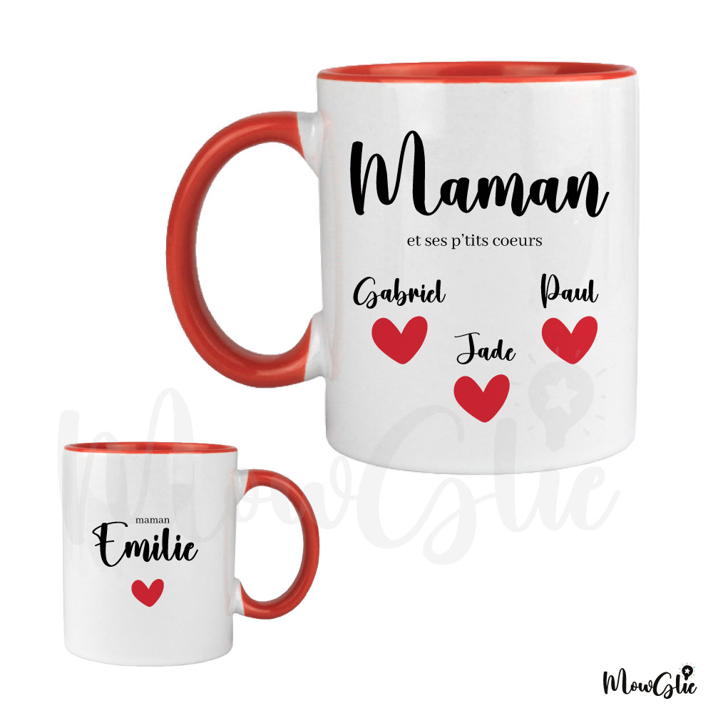 Le mug P’tits Coeurs est le cadeau personnalisé parfait à offrir à une maman, une mamie, une marraine, une tata, une nounou… exceptionnelle. Plus qu’une tasse, c’est un hommage tendre à tous les moments précieux passés avec ses enfant. petits-enfants, filleul(e)s, neveux, nièces… une attention pleine d’amour qui lui donnera le sourire à chaque gorgée.