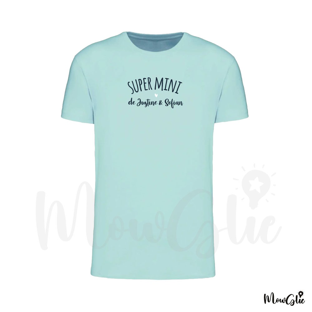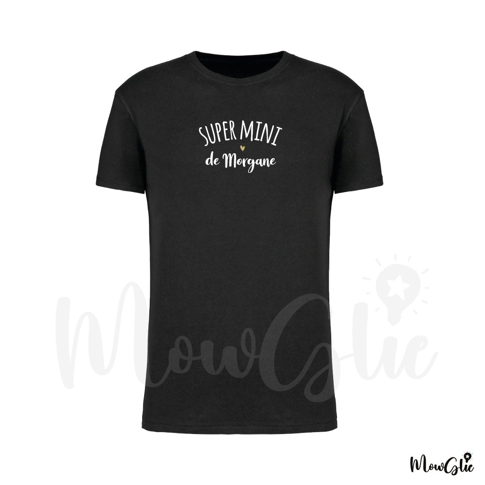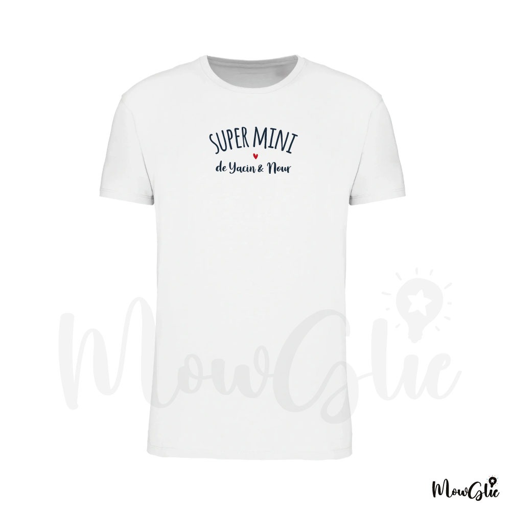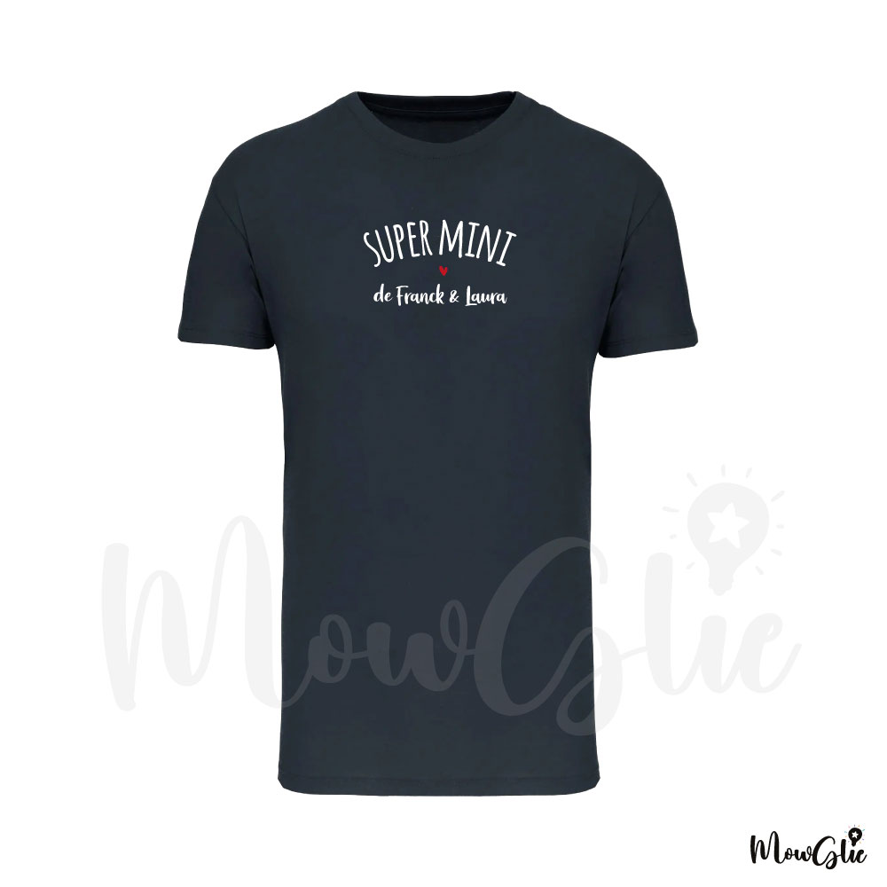 Le tee-shirt Super Mini est une super idée de cadeau personnalisé à offrir à un enfant pour une occasion particulière telle qu’une fête de famille ou une séance photo. Personnalisez-le avec le prénom de son ou ses parents et faites-en une pièce unique remplie d’amour et d’émotion et un souvenir précieux.