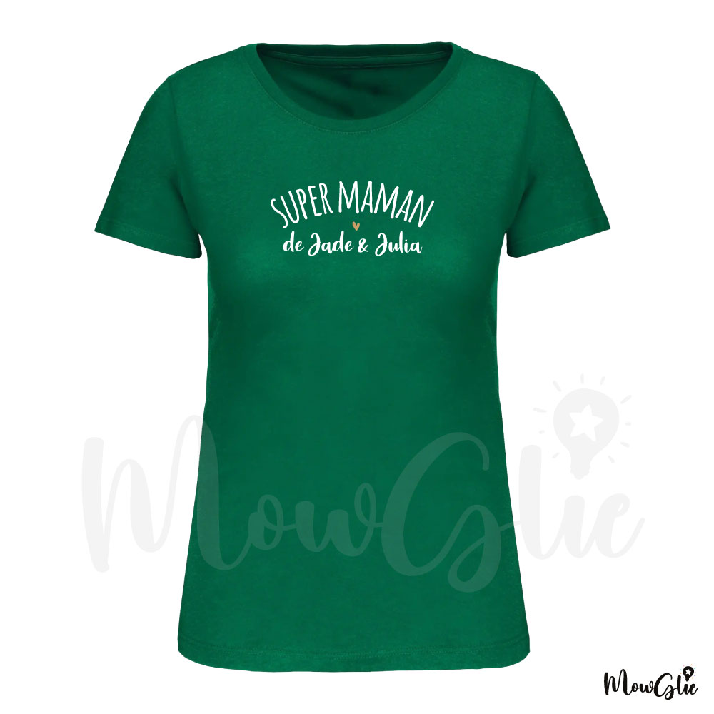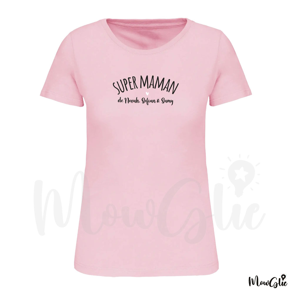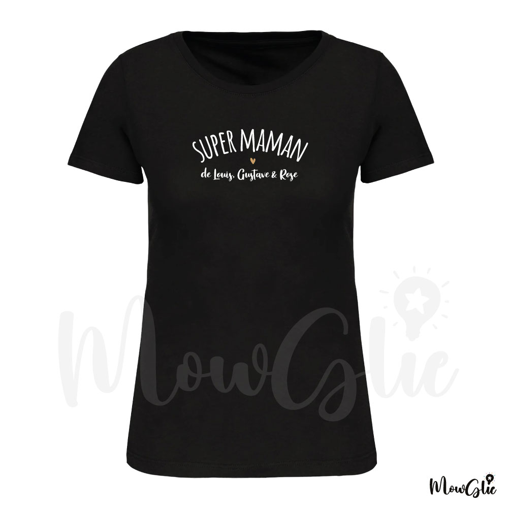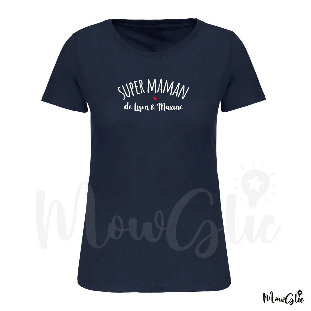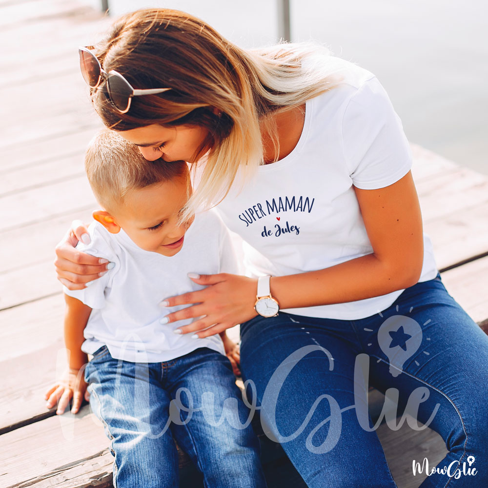 Le tee-shirt Super Maman est le cadeau personnalisé idéal à offrir à Madame à l’occasion de la naissance d’un enfant, la fête des mères, son anniversaire, Noël… pour lui dire à quel point elle est exceptionnelle. Personnalisez-le avec le prénom de son ou ses enfants et faites-en une pièce unique remplie d’amour et d’émotion.