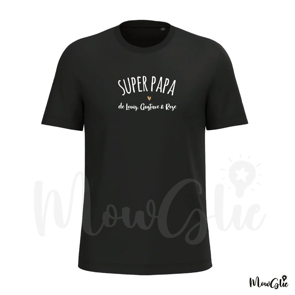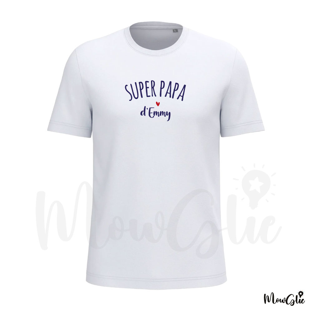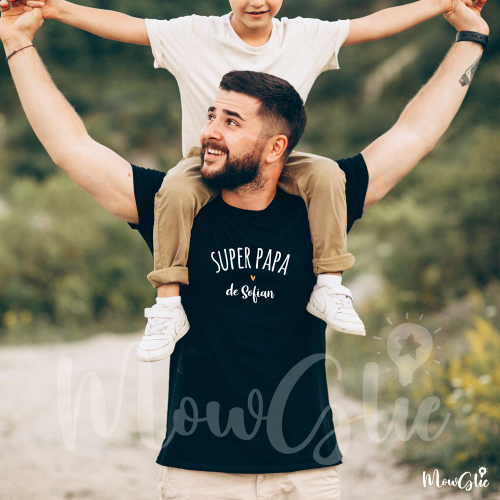 Le tee-shirt super Papa est le cadeau personnalisé idéal à offrir à Monsieur à l’occasion de la naissance d’un enfant, la fête des pères, son anniversaire, Noël… pour lui dire à quel point il est exceptionnel. Personnalisez-le avec le prénom de son ou ses enfants et faites-en une pièce unique remplie d’amour et d’émotion.