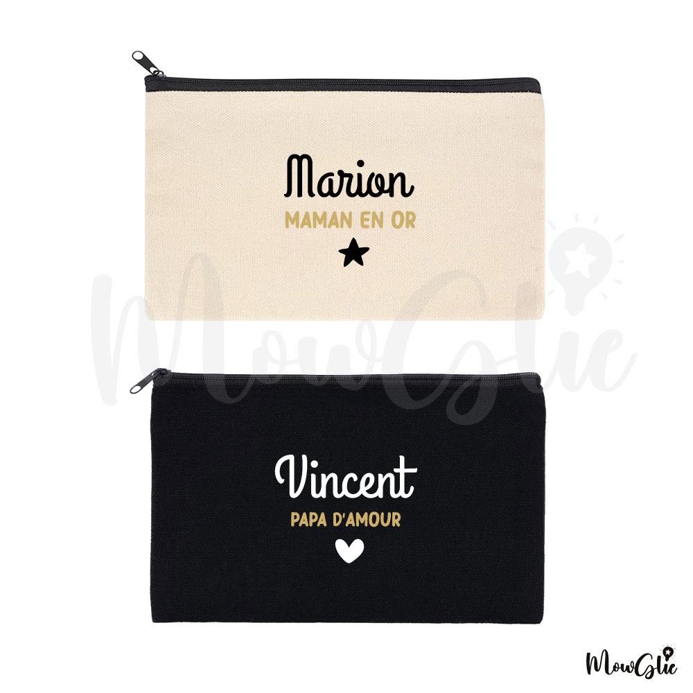 La trousse fourre-tout Amour en Or personnalisée est le cadeau parfait pour dire je t’aime à un membre de la famille, ami(e), collègue… et lui dire à quel point il ou elle est exceptionnel(le). Personnalisez-la avec son prénom et choisissez entre un petit coeur et la mention « d’amour » ou une étoile avec « en or ».